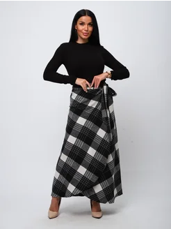Юбка с запахом теплая в клетку