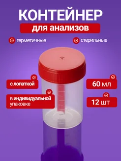 Контейнеры для анализов с лопаткой 12шт 60мл
