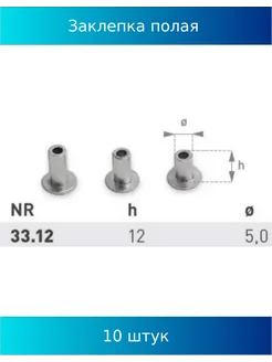 Заклепка полая алюминиеваяD=5mm, L=12mm 33.12, 10 шт