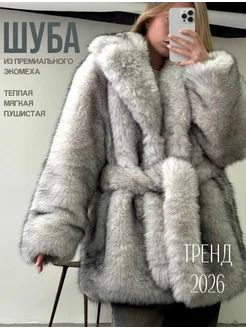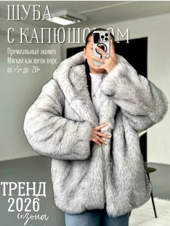Куртка зимняя кожаная больших размеров с капюшоном (экокожа)