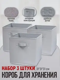Коробки для хранения вещей 3 шт 31*31*31 см