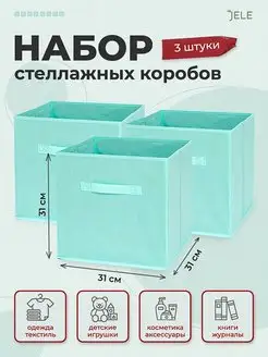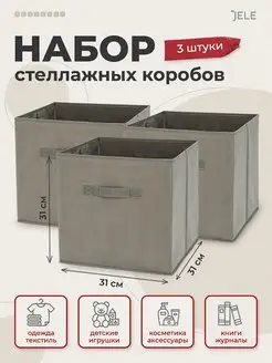 Коробки для хранения стеллажные 3 шт 31*31*31 см