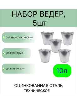Оцинкованное ведро 10 л, набор 5шт, техническое