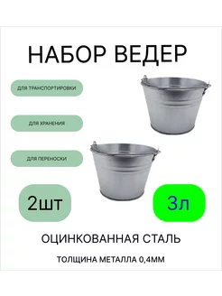 Оцинкованное ведро 3 л, набор 2шт