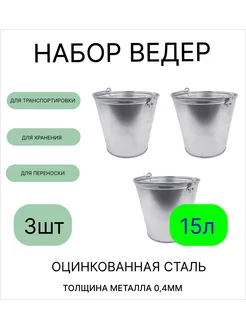 Оцинкованное ведро 15 л, набор 3шт, толщина 0,4 мм