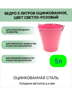 Оцинкованное ведро 5 л, цвет светло-розовый
