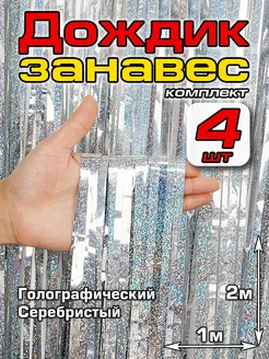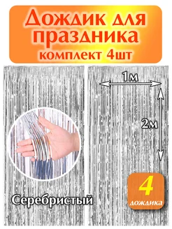 Дождик новогодний для фотозоны на елку серебро 4 шт