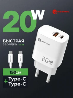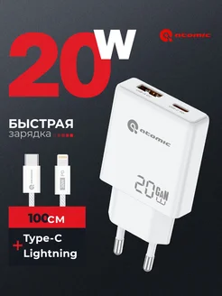 Зарядка двойная iPhone быстрая + кабель Type-C Lightning 20W