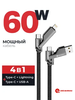 Провод type-c быстрая зарядка 4в1 Type-C Lightning USB 60 W