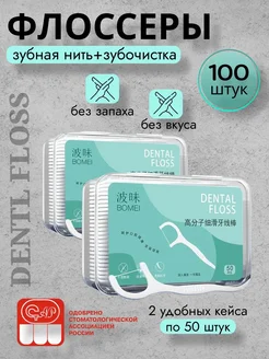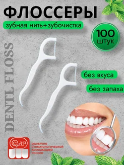Флоссеры 100 шт. Зубная нить с зубочисткой