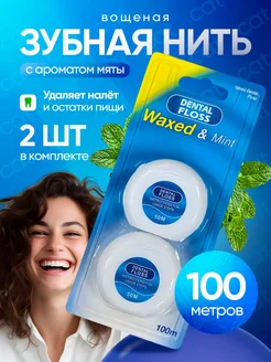 Зубная нить вощеная тонкая со вкусом мяты 2 шт по 50 метров