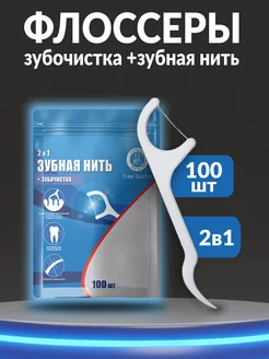 Зубная нить с зубочисткой 100 шт. Флоссеры