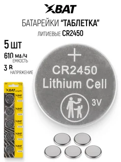 Батарейки литиевые CR2450 "Таблетка" 5 шт. 3 В, 610 мА ч