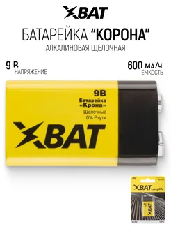 Батарейка "Крона" алкалиновая щелочная 1 шт. 9 В, 600 мА ч