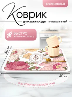 Коврик для сушки посуды впитывающий диатомитовый 40x30 см