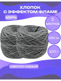 Пряжа хлопок с эффектом фламе, цвет светло-серый, 200 гр