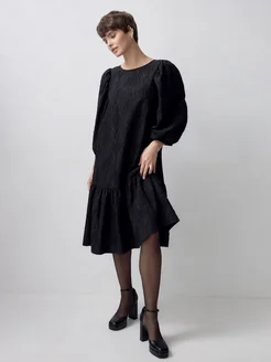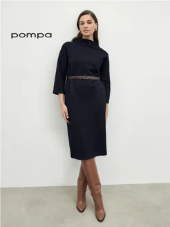 Прямое платье из фактурного трикотажа с воротником-стойка