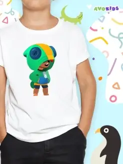 Футболка для мальчика белая хлопковая принт Brawl Stars Леон