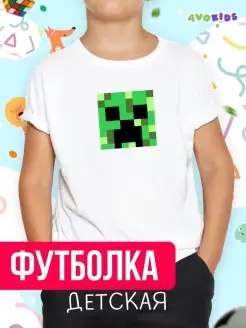 Футболка для мальчика белая хлопковая принт Minecraft крипер