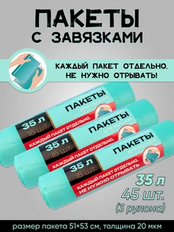 Пакеты для мусора с завязками, ПСД, 35 л, 45 шт