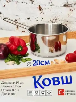 Ковш кухонный с крышкой 0,8 л из нержавеющей стали