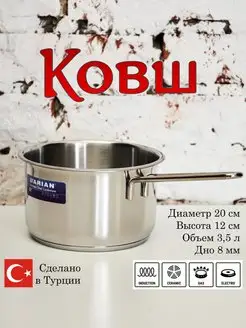 Ковш кухонный с крышкой 1,3 л из нержавеющей стали
