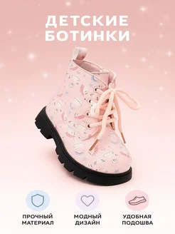 Детские розовые ботинки с удобной подошвой и шнуровкой