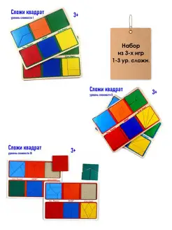 Развивающая игра Сложи квадрат 1, 2 и 3 категория