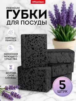 Губки для мытья посуды, черные, 5 штук