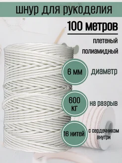 Шнур для вязания 6 мм, паракорд плетёный, белый 100 м