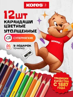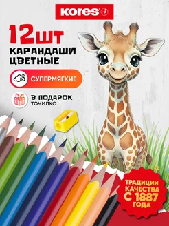 Карандаши цветные для рисования мягкие набор 12 цветов