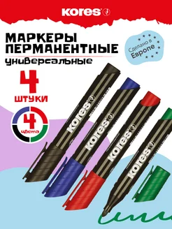 Маркер перманентный несмываемый, 1.5-3 мм, 4 цвета в наборе