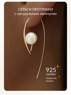 Серьги протяжки серебро 925 длинные позолоченные с жемчугом