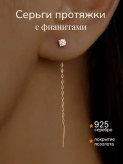 Серьги серебро 925 серебряные дорожки из камней минимализм
