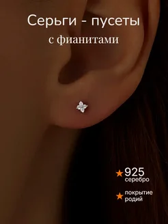 Серьги гвоздики серебро 925 пусеты серебряные с фианитами