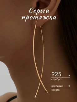 Серьги длинные серебро 925 висячие позолоченные протяжки