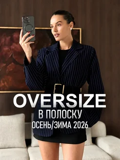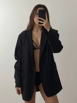 Пиджак тёмно-синий в полоску oversize офисный классический