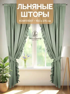 Льняные шторы Любава фисташковый, 150х275, 2 шт