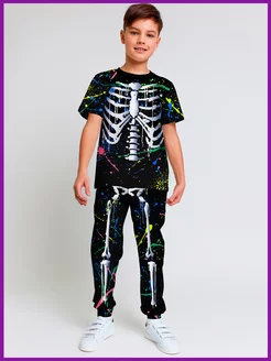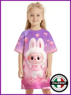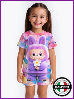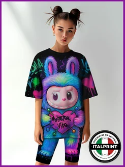 Костюм с принтом Лабубу – футболка оверсайз и велосипедки