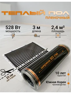 Инфракрасный пленочный теплый пол 80 см длина 3 метра