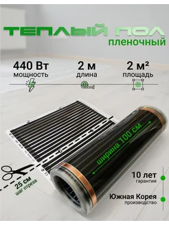 Инфракрасный пленочный теплый пол 100 см длина 2 метра