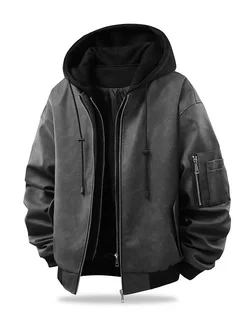 Куртка бомбер кроп осенний с капюшоном с двойной молнией