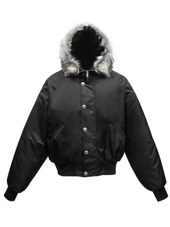 Куртка бомбер укороченный кроп с мехом и молнией на капюшоне