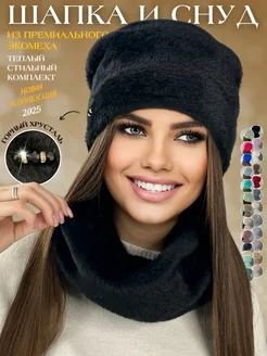 Шапка зимняя вязаная бини экомех со снудом комплект,женский