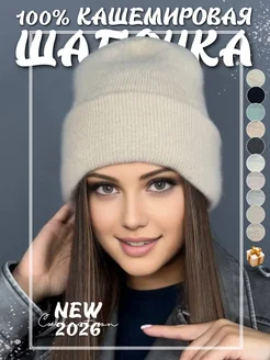 Шапка зимняя вязаная бини осень женская, кашемир унисекс