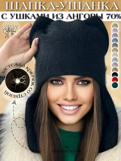 Шапка ушанка зимняя вязаная с ушками,теплая ангора
