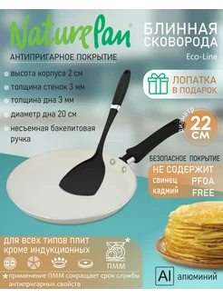 Сковорода блинная d22см, лопатка в подарок, Eco-Line
