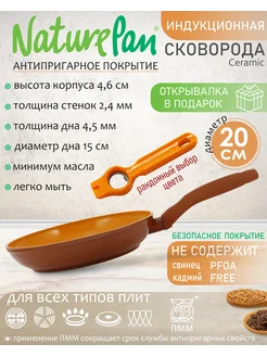 Сковорода с индукционным дном d20см, с подарком, Ceramic