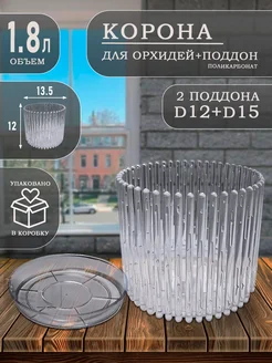 Горшок для орхидей Корона, с поддоном, прозрачный