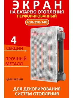 Экран радиаторный на батарею 390х610х140 ДМЭР 4 секции